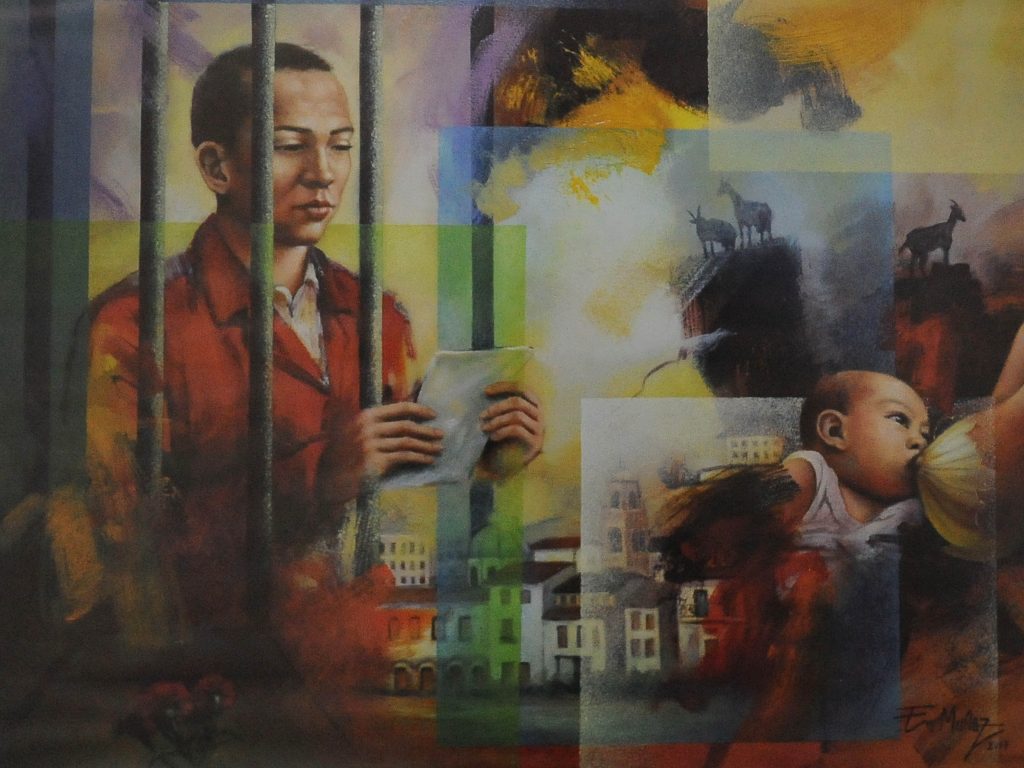 De “75 años después” quedan en la memoria no solo las obsesiones de vida del poeta. Hay figuraciones múltiples: el nacimiento, la cárcel, las cabras, la higuera, las palomas que recrean la libertad en su vuelo. Se nutre, además, la muestra pictórica con fragmentos de su poética, que rememora sus emociones y pasajes de vida…