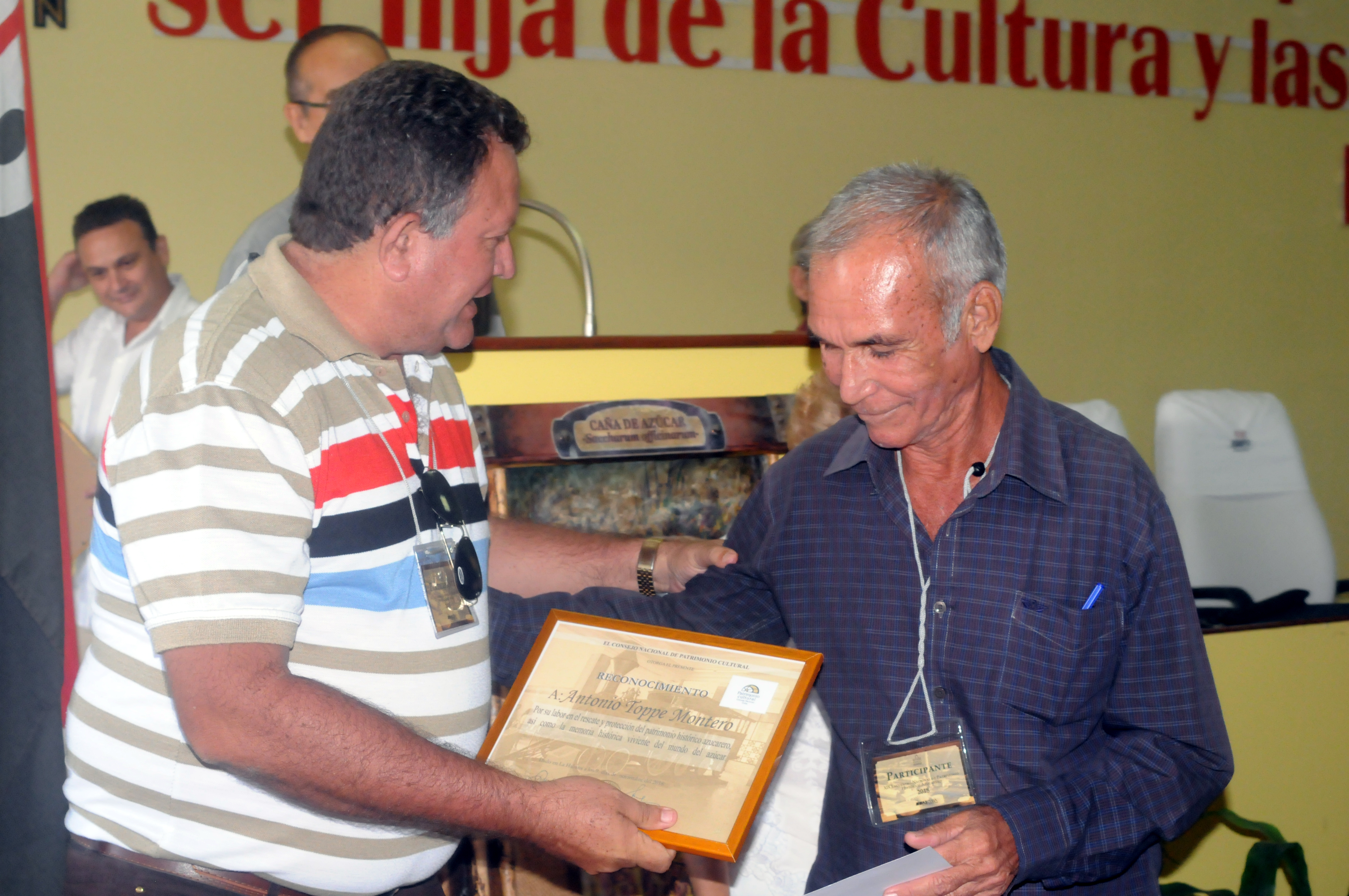 La jornada de clausura fue momento propicio para reconocer a dos personalidades de la historiografía holguinera que han dedicado su vida por salvaguardar el patrimonio local, y en este caso específico el azucarero: el Dr. C Antonio Topes, y el Lic. Hirám Pérez, presidente de la Unión Nacional de Historiadores en Holguín.