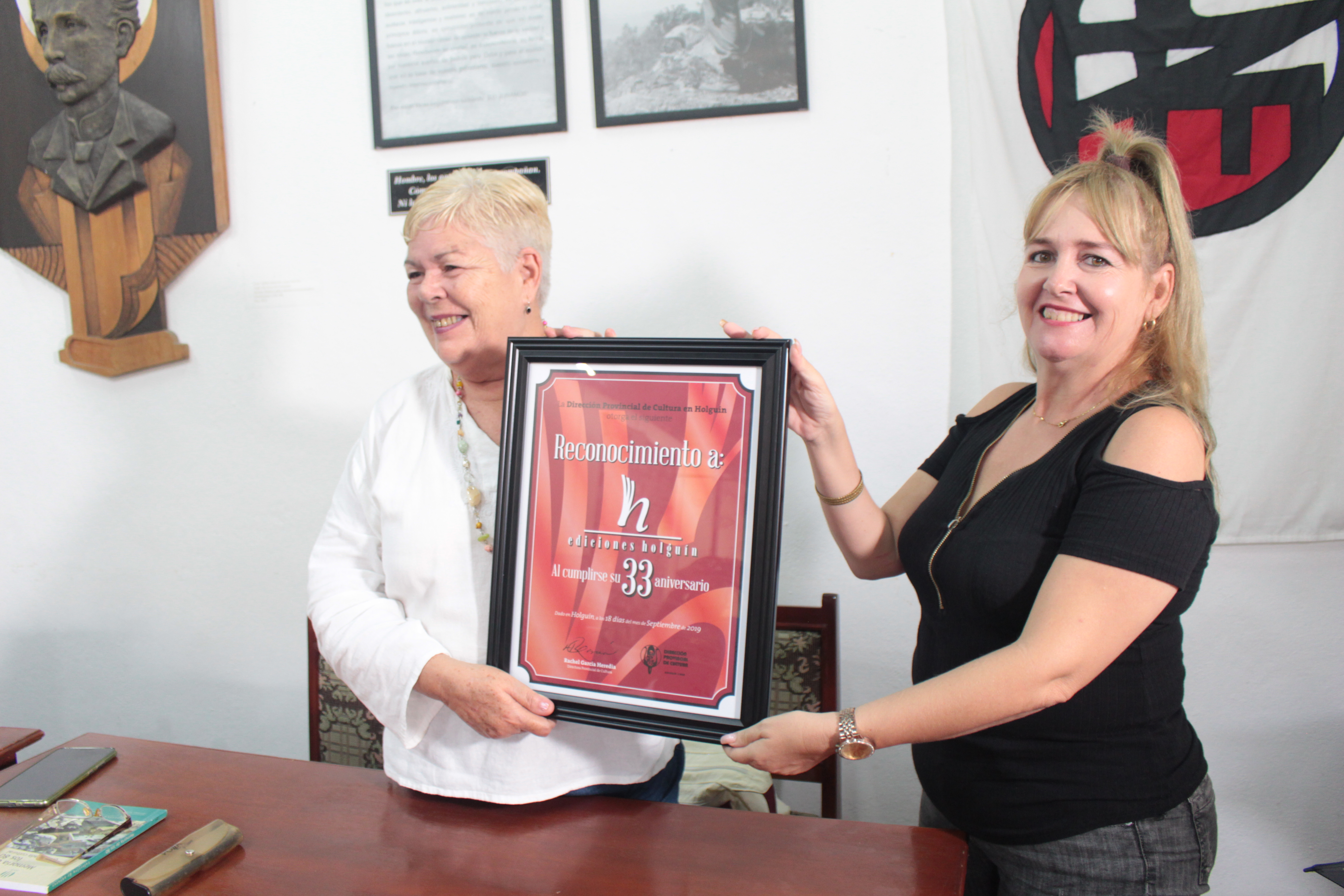 Lourdes hizo hincapié en dos de los actores innegables de esa época, Julio Méndez, quien se desempeñaba como Director Municipal de Cultura, y el periodista y escritor Alejandro Querejeta. Los asistentes al espacio elogiaron la reedición de un libro necesario que desde hacía más de 10 años se había agotado en todos nuestros puntos de venta. Como parte del festejo por el 33 Aniversario de Ediciones Holguín, la Directora de Cultura en la provincia, Rachel García Heredia entregó un reconocimiento a esta institución. Anisleydis Barquilla, Directora del Centro Provincial del Libro nos acompañó en una tarde muy emotiva que concluyó con un recital de poesía.