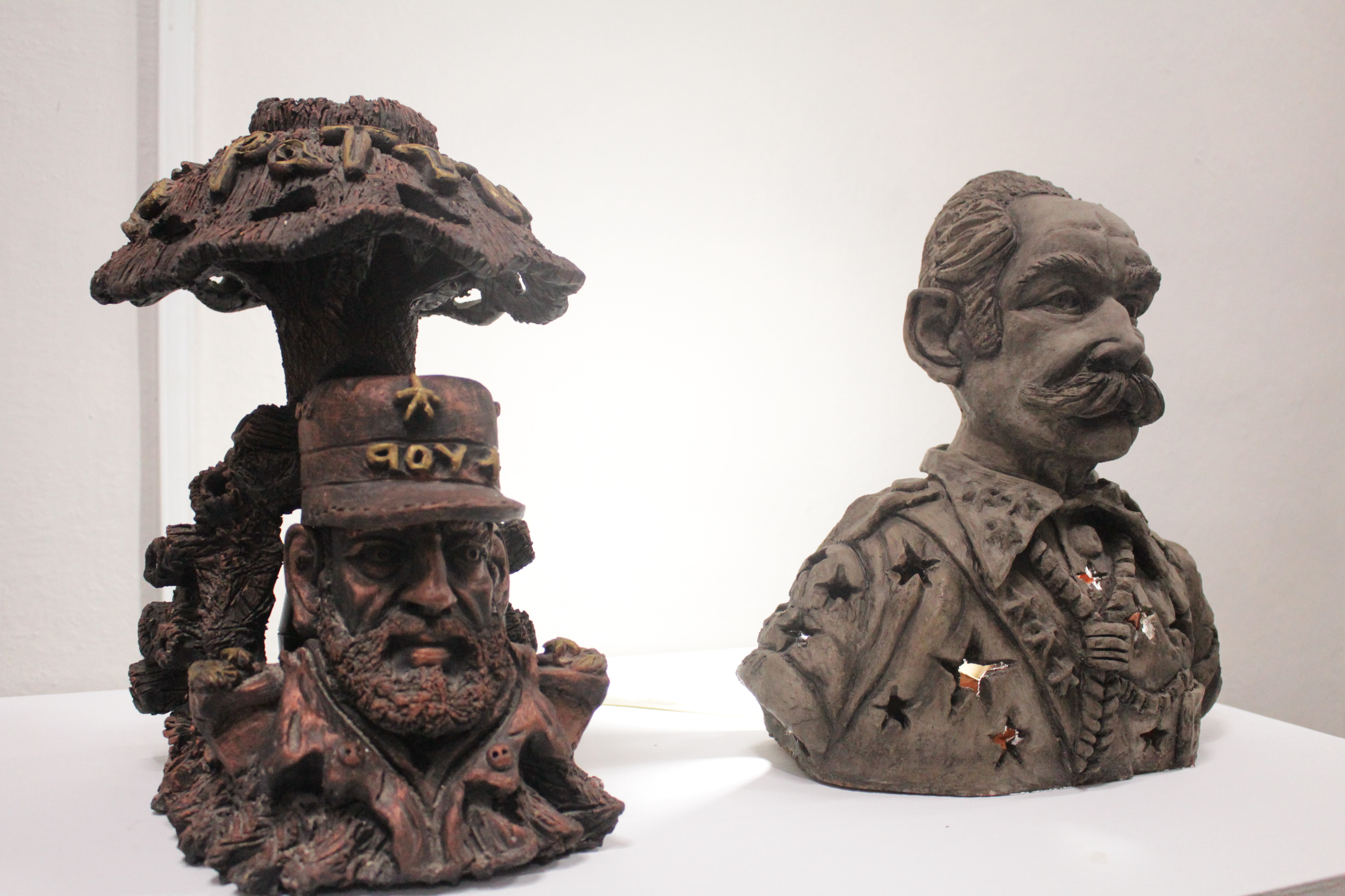 Un hilo temático agrupa estas piezas: una revisión a la historia nacional y sus principales protagonistas, entre ellos Calixto García, Camilo Cienfuegos y Fidel Castro, a través de diversas técnicas y manifestaciones, desde la talabartería, la madera y el parche.