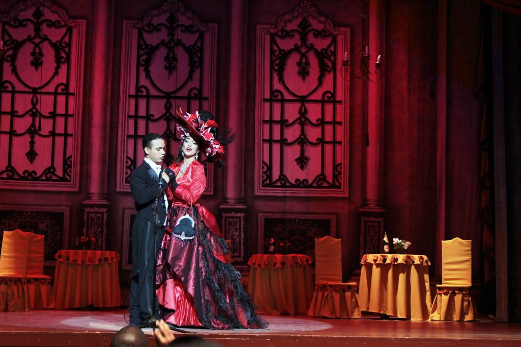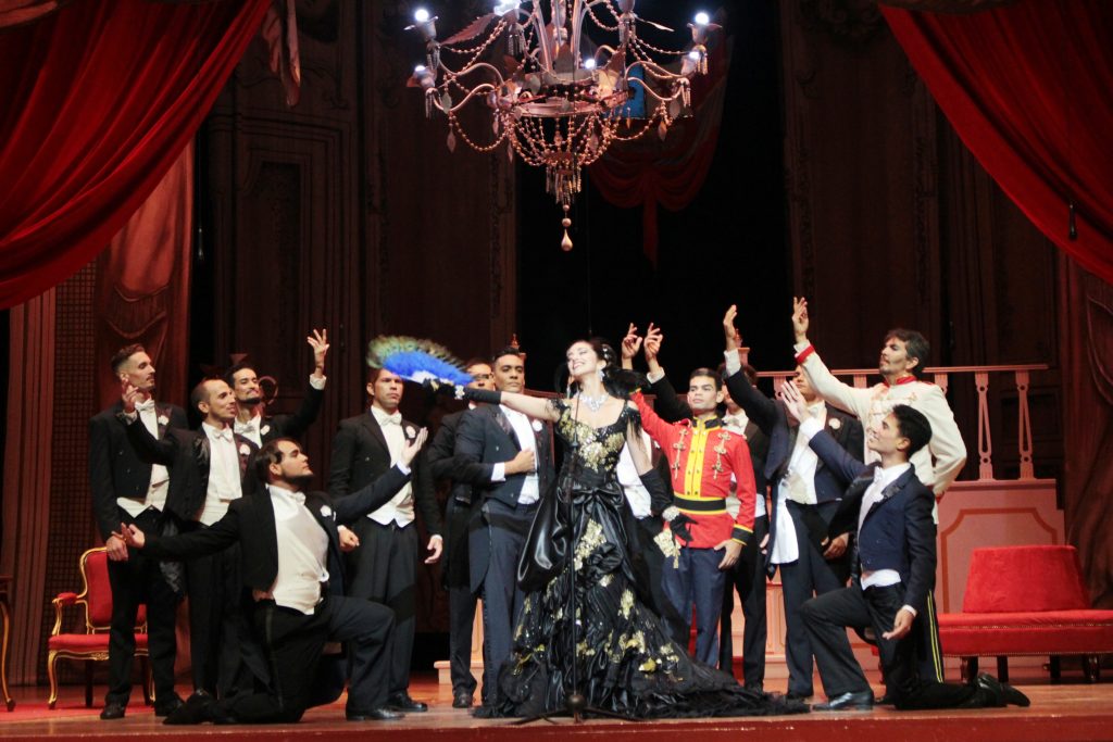 La viuda –sobre su personaje recae buena parte del peso de la obra– fue interpretada por una atractiva Yuliannis Sánchez, que nos ofreció un personaje agradablemente frívolo y en buena medida superficial, como amerita, intentando subrayar en el escenario el binomio necesario: el canto y la actuación. En lo particular, destaco al ya veterano Alfredo Calzadilla, como el barón Mirko Zeta, en lo que fue una clase de versatilidad escénica. El resto del elenco –el personaje de Niegus es aquí una delicia– le aportó su parte de diversión, desenvolvimiento y gracia a una obra que posee esos matices.