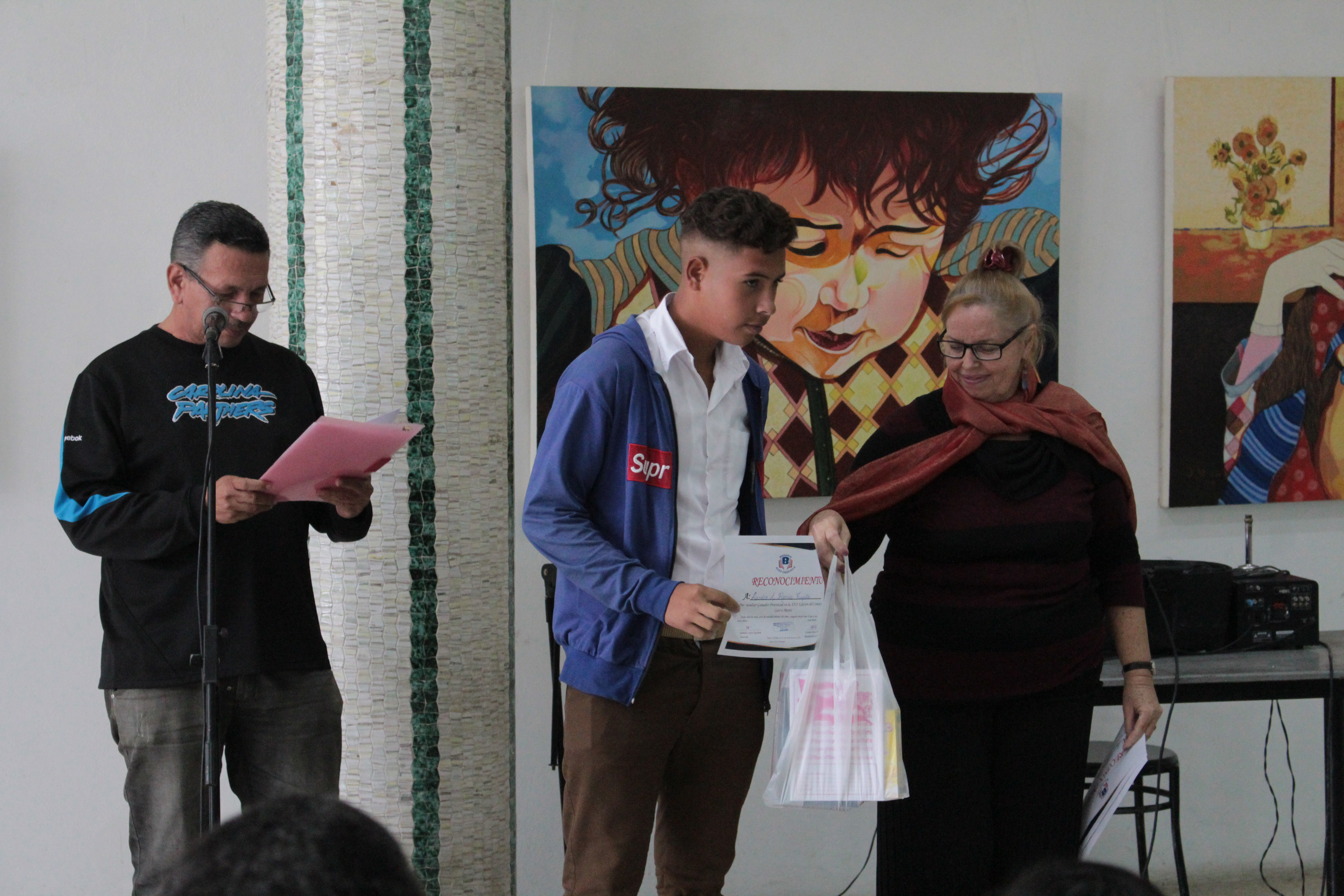 Con la actuación del joven trovador y actor Laynier Verdecia, la entrega estuvo presidida, entre otros, por Náyade Smart García, subdirectora Técnico Artístico del Sectorial Provincial de Cultura; Dennys Pérez Laurencio, funcionario del Departamento Ideológico de la UJC; Manuel Arencibia Santiesteban, representando a la Sociedad Cultural José Martí en la provincia, y Marilyn Mir Mora, presidenta Municipal de la OPJM. El importante concurso nacional Leer a Martí es convocado desde 1998 cada año por la Biblioteca Nacional José Martí y constituye todo un suceso cultural en Holguín, provincia que ha obtenido 50 premios nacionales en las ediciones concluidas del mismo.