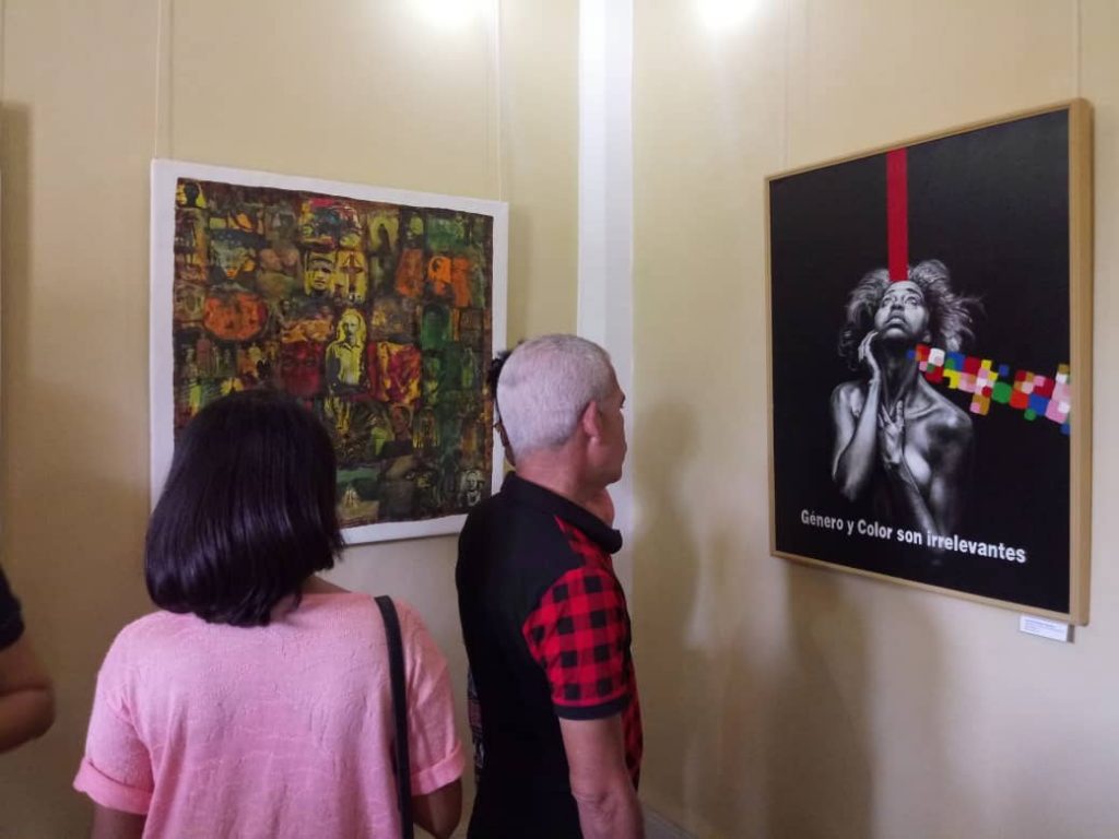 Encontramos en la muestra, con museografía de Josvel Vázquez Prat y diseños de Javier Erid Díaz Zaldívar, cinco piezas de la serie Visión Caribe, del maestro Jorge Hidalgo Pimentel, a partir del collague y la técnica mixta sobre lienzo; además «Hacia el futuro», de Rolando Salvador Pavón; «Género y Color son irrelevantes», de Ronald Guillén Campos; «Máquina con una ligera mirada a la izquierda», de Wellis Peña Ávila; «Río Mayarí», de Roberto Barzaga Frómeta, y «Trasmutación», de Ernesto Ceballos Hernández.