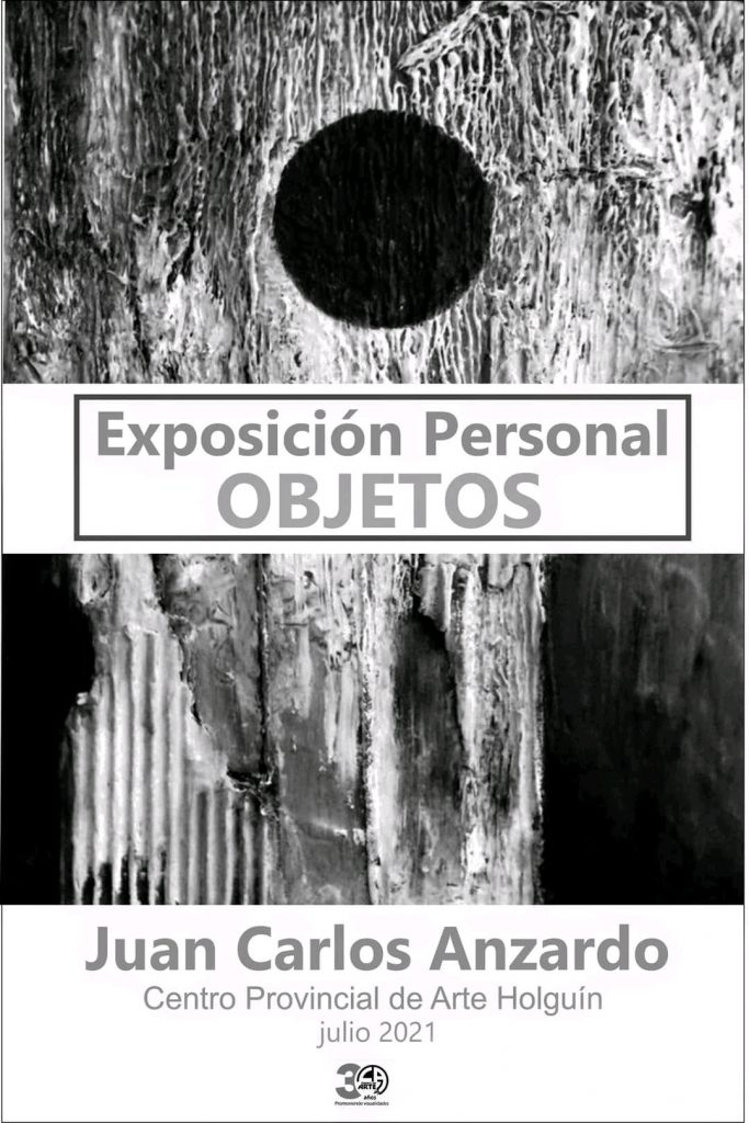 La exposición personal Objetos, del artista Juan Carlos Anzardo, se exhibe en las plataformas digitales del Centro Provincial de Arte de Holguín en su 30 aniversario, como parte de la Jornada de Arte Abstracto organizada por el artista y curador Ronald Guillén.