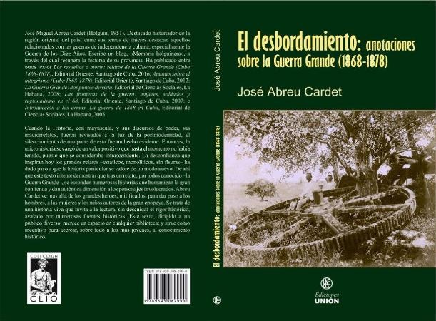 El libro El desbordamiento: anotaciones sobre la Guerra Grande (1868-1878) del historiador holguinero José Abreu Cardet será presentado este viernes 16 de noviembre en la sala Villena de la Unión de Escritores y Artistas de Cuba (UNEAC).